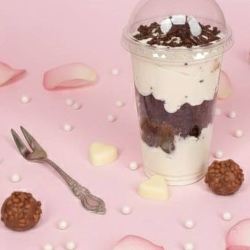 Copo da felicidade creme de avelã com morangos (creme de avelã, brownie e morangos)