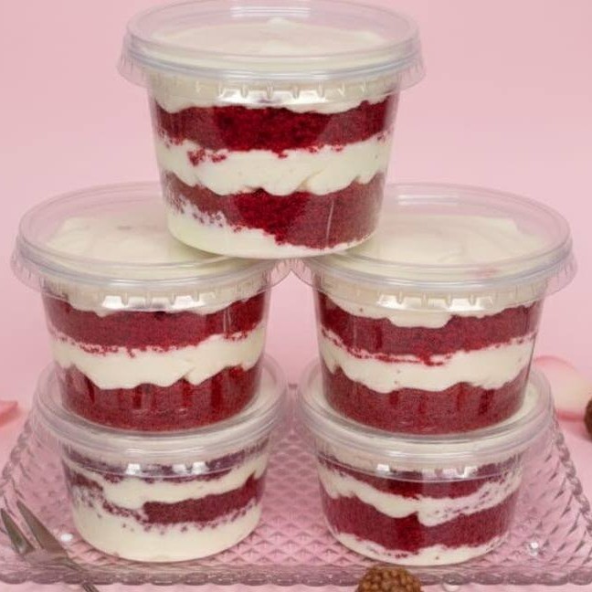 Bolo de pote Redvelvet - com mousse de Ninho e brigadeiro branco com cream cheese