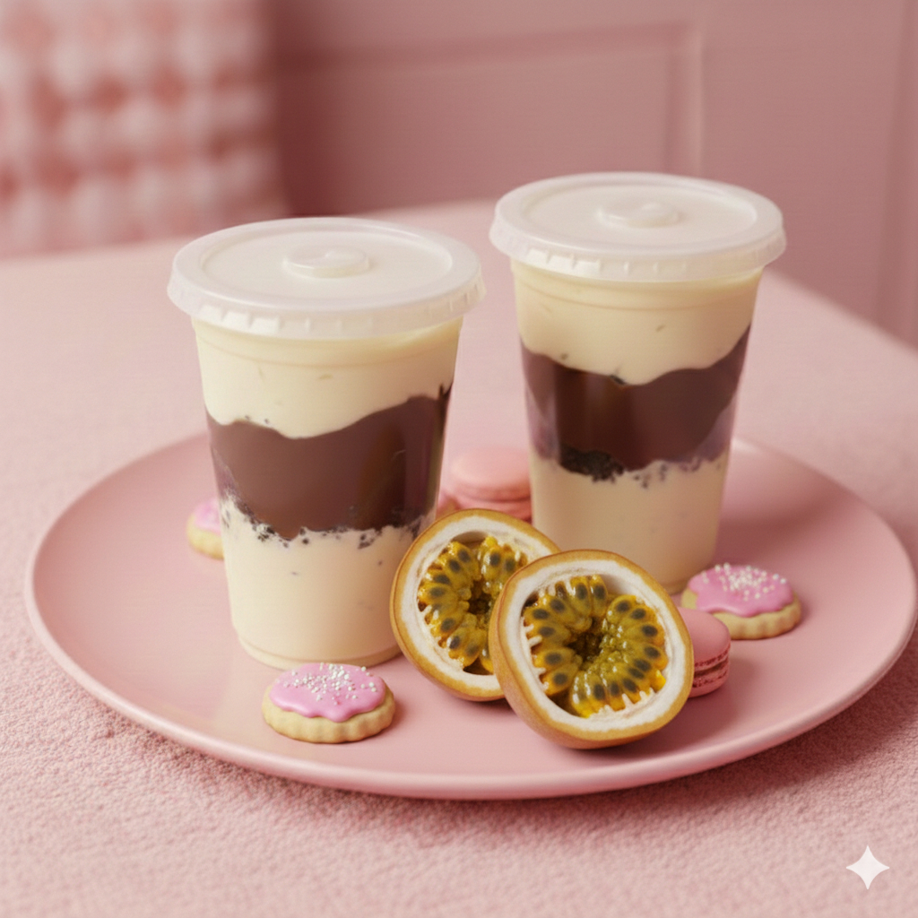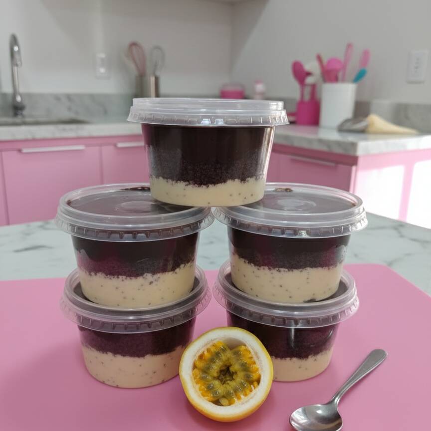 Mousse de maracujá, brownie e creme de chocolate 300ml
