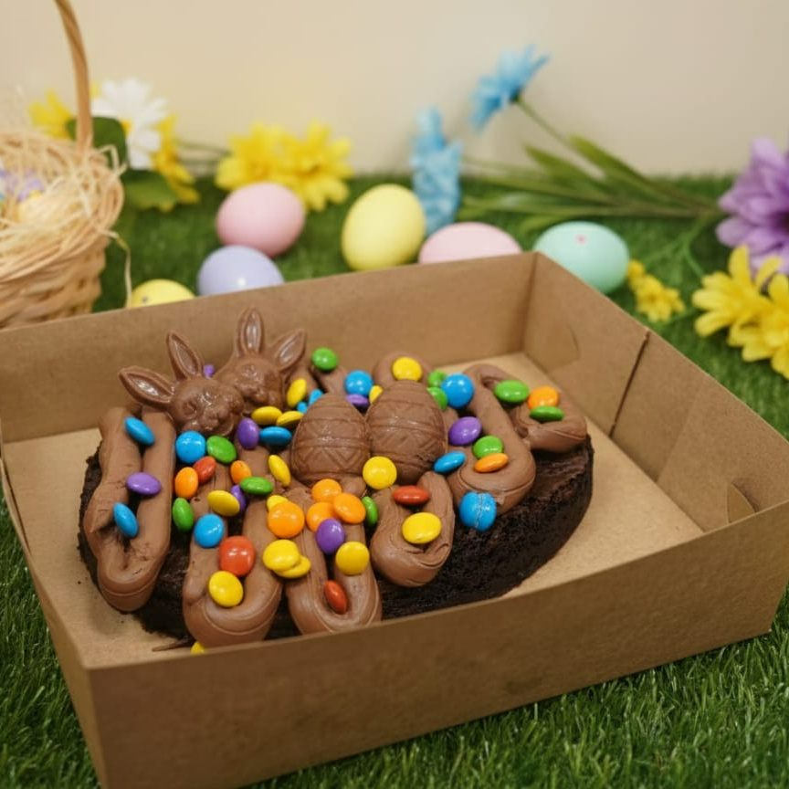 Ovo Fatia Brownie - delicioso brownie coberto com creme de avelã e confeitos