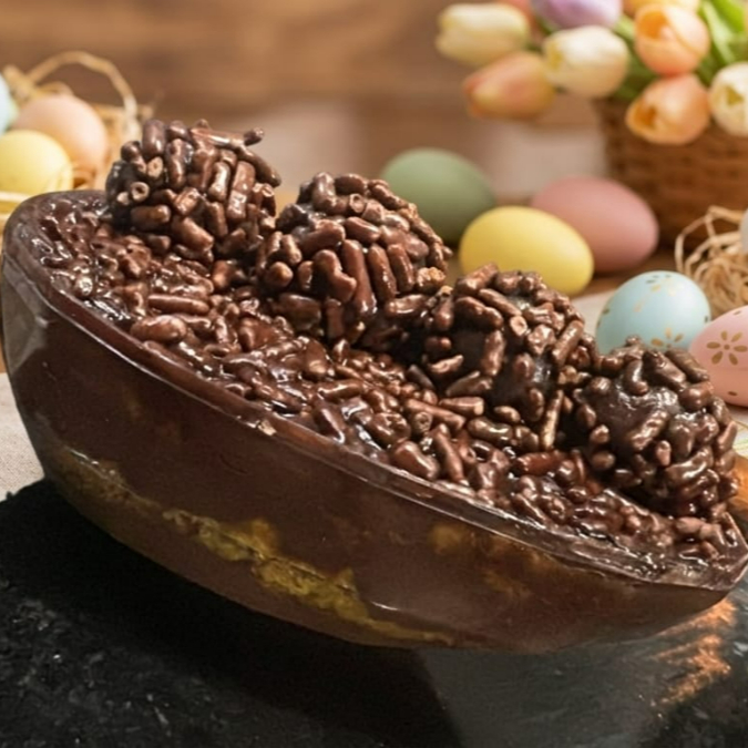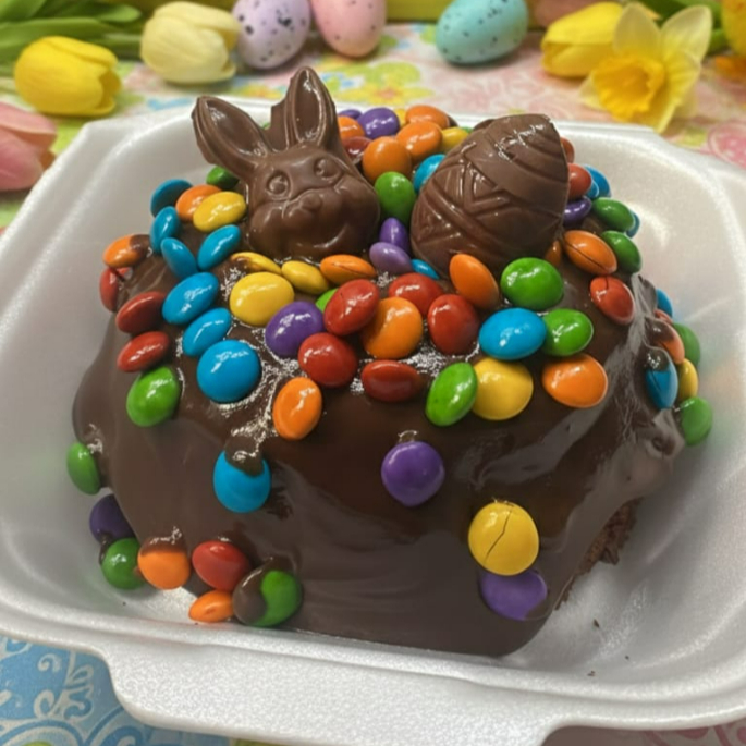 Mini Vulcão de Páscoa - massa de chocolate com cobertura de chocolate e confeitos
