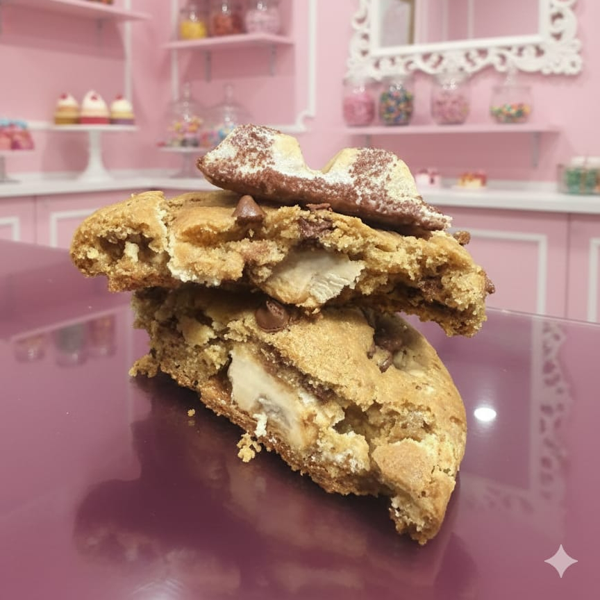 Cookie de Kinder Bueno - massa tradicional com chocolate ao leite e branco, recheio de Kinder bueno