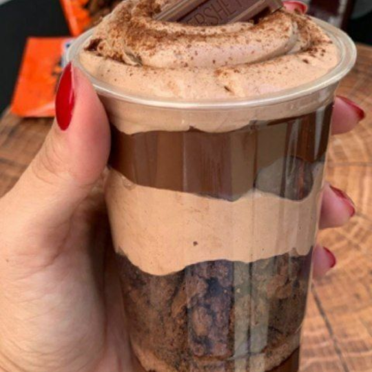 Pavê de Kinder Bueno 250ml, creme de Kinder Bueno , camada de biscoito , creme de avelã e chantilly