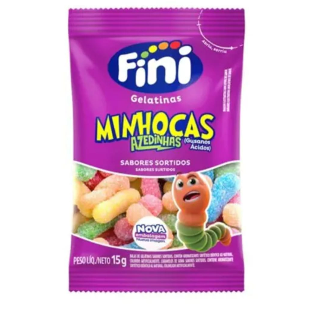 Bala Fini Gelatina Minhocas Cítricas Embalagem 15g