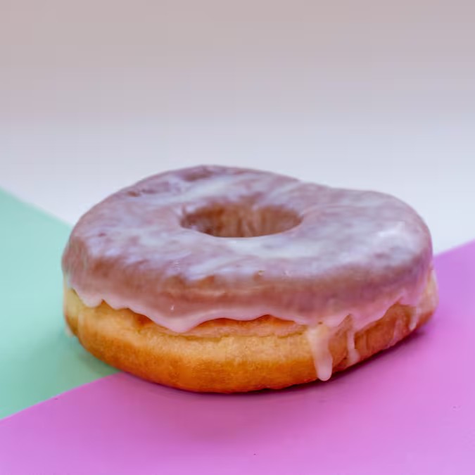 Donut com cobertura de glacê de açúcar. Sem recheio.