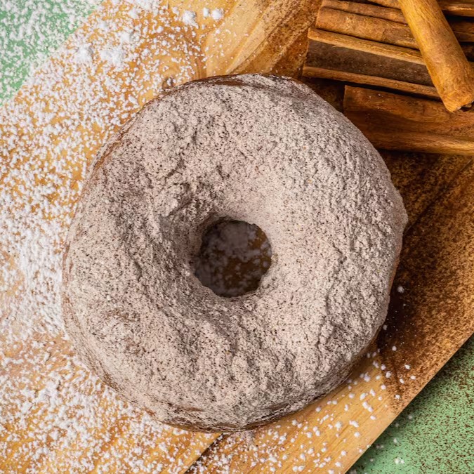 Donut envolto no açúcar e canela. Sem recheio.