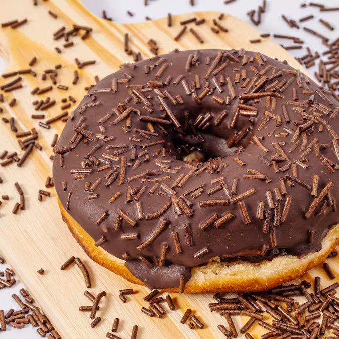 Donut recheado com um maravilhoso brigadeiro de panela com cobertura de chocolate e granulados.