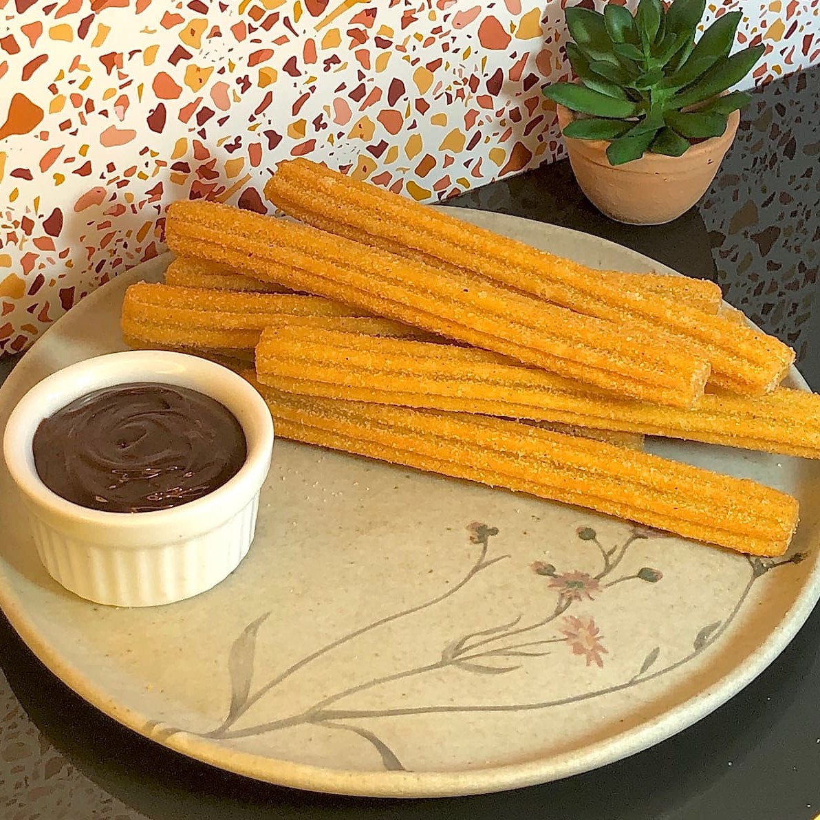 O clássico churros espanhol, sequinho e crocante - finalizado com açúcar e canela. Serve 1 a 2 pessoas!