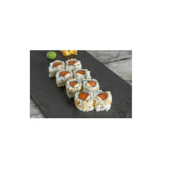 4 sashimi de salmão, 2 niguiri salmão e 4 sakemaki