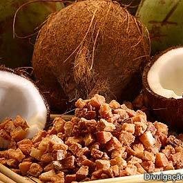 A polpa fresca de coco possui excelentes efeitos medicinais e é um alimento praticamente completo, possuindo vasta quantidade de nutrientes fundamentais, além de diversos elementos promotores de saúde e preventivos de doenças. Um de seus componentes especiais é o óleo de coco, um alimento funcional com propriedades de prevenção e combate de doenças infecciosas, de ativação do sistema imunológico, acompanhado do nosso maravilhoso amendoim caramelizado com caramelo e chocolate.