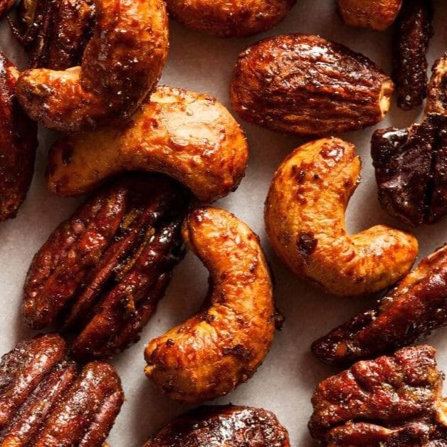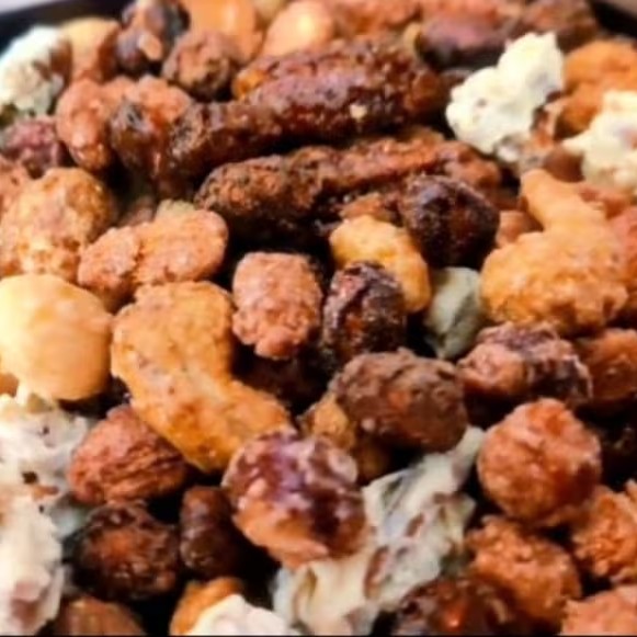 Nosso mix contém, macadâmias, nozes pecan, nozes com leite condensado, nozes mariposa, amêndoas, avela, castanha de caju, castanha de caju com chocolate, amendoim com caramelo e amendoim com chocolate.
