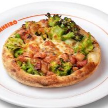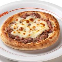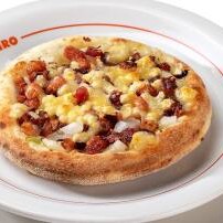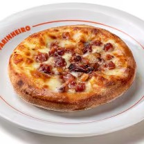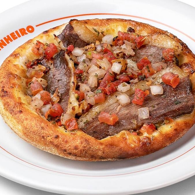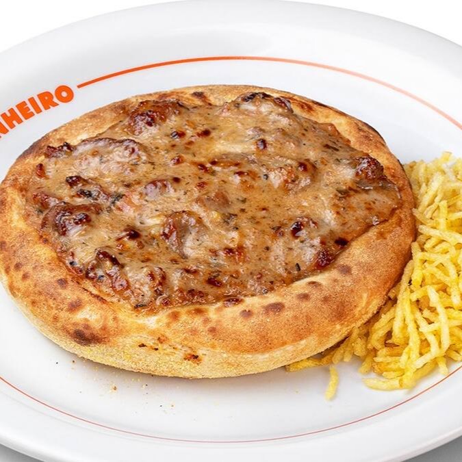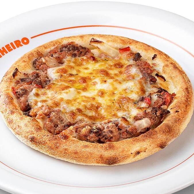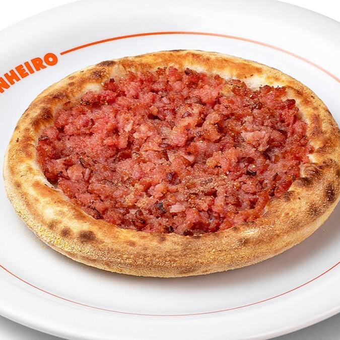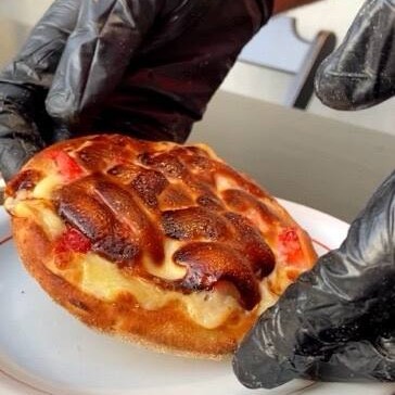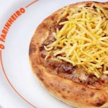 Esfiha de mussarela, cebola picada, bacon em cubo coberta com queijo parmesão.