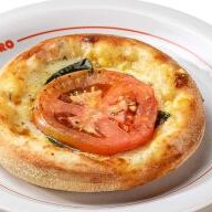 Esfiha de mussarela, parmesão, folhas de manjericão, tomate em rodela e uma pitada de orégano.