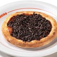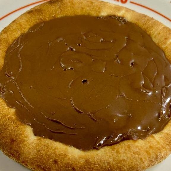 Esfiha aberta de chocolate ao leite , beijinho e coco ralado