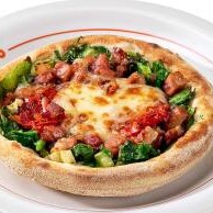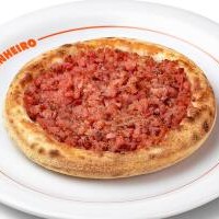 Esfiha de calabresa moida, cebola picadinha, mussarela, uma rodela de tomate e orégano.