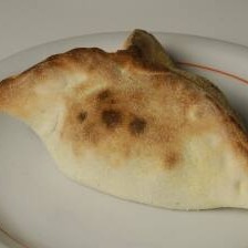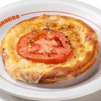 Esfiha de mussarela, parmesão, alho granulado coberto com uma rodela de tomate e uma pitada de orégano.