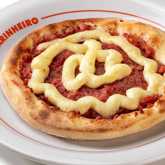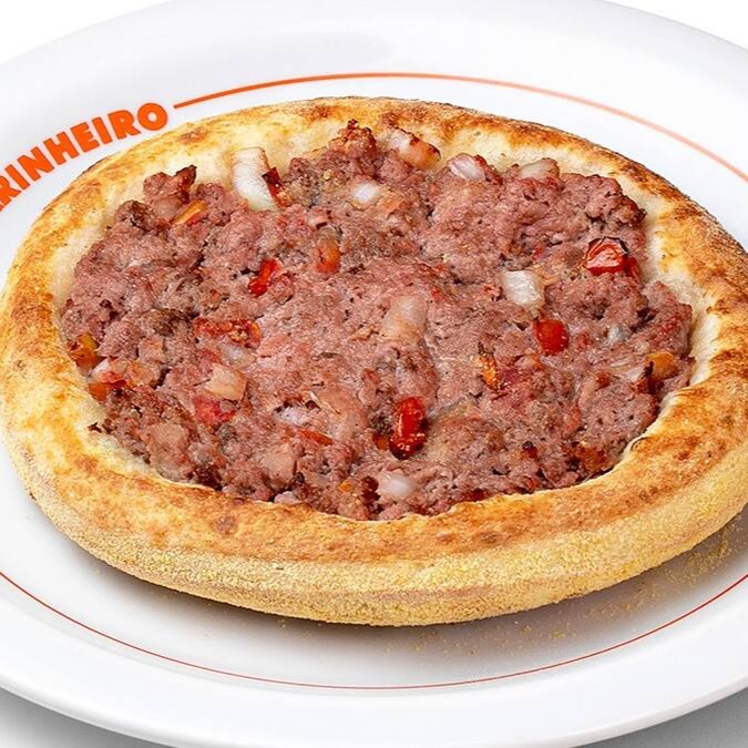 Esfiha de carne, bacon em cubo e requeijão cremoso.