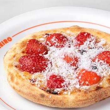 Esfiha aberta de chocolate ao leite , beijinho , morango e coco ralado