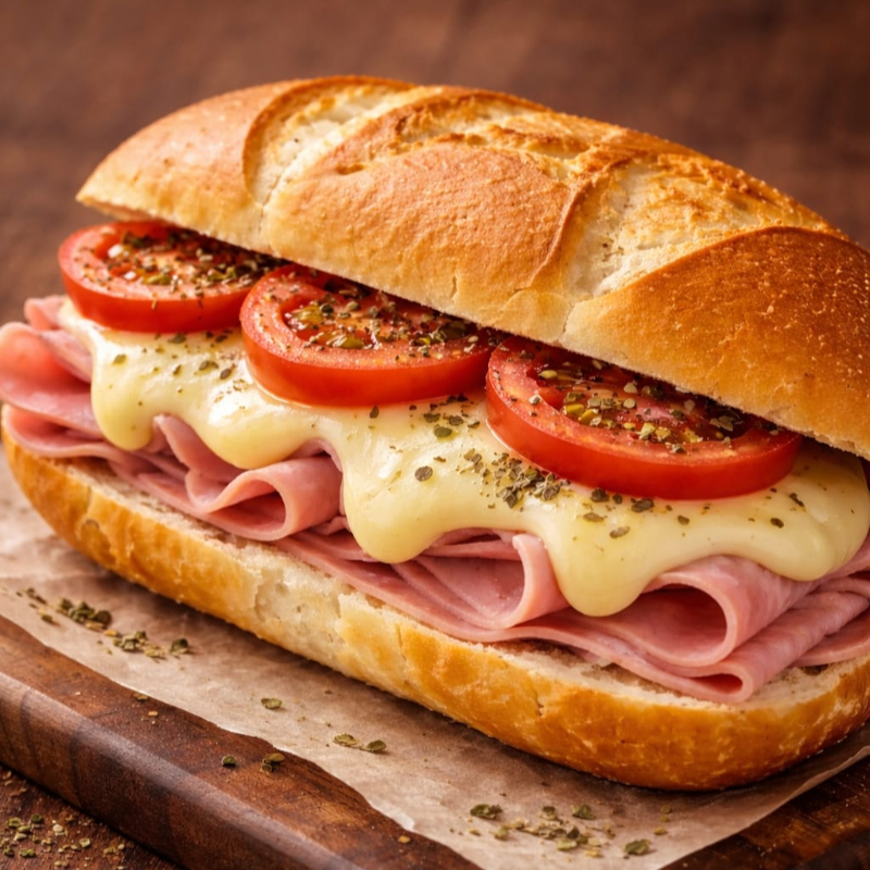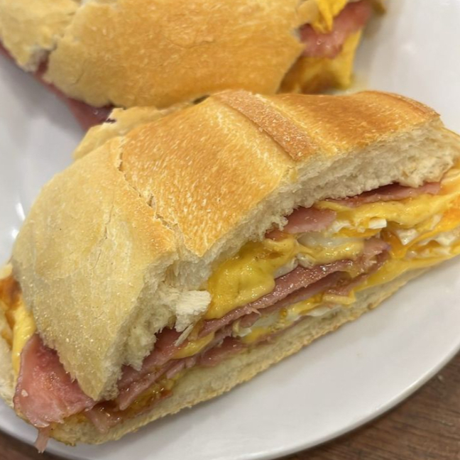 pão francês, presunto/mussarela, ovo, alface e tomate
