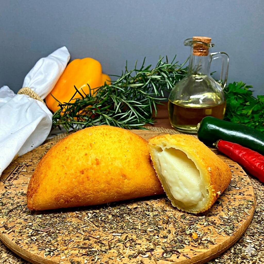 Cubinhos de frango, cebola e cababresa. Beeem empanadinho.