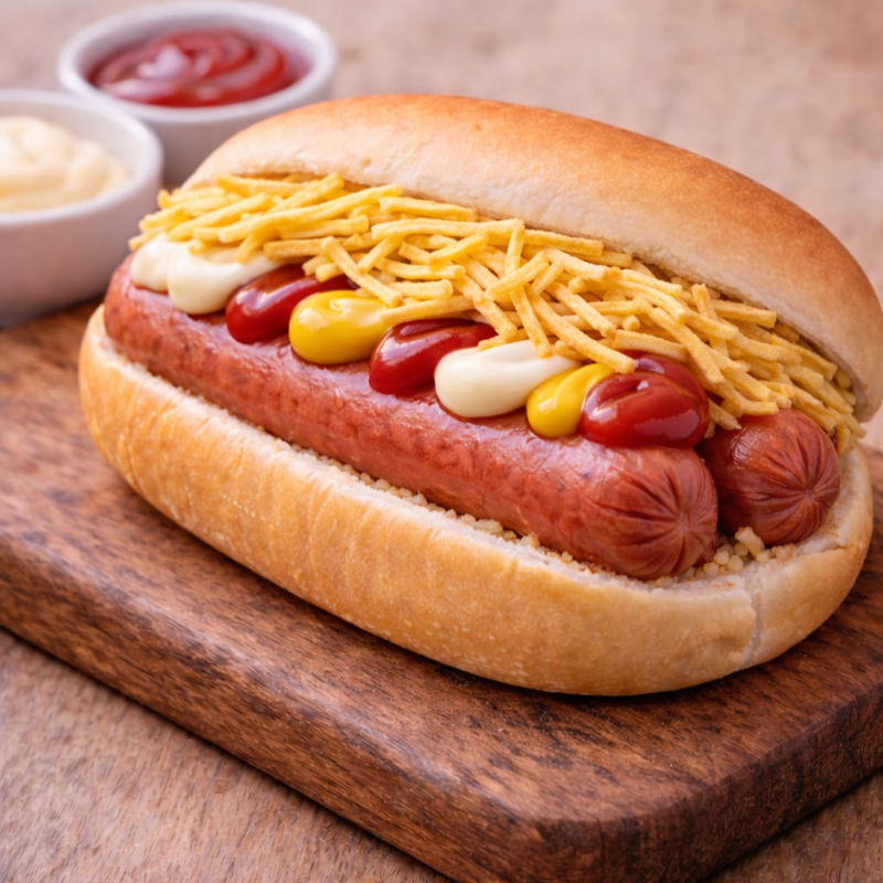 Salsicha, Batata Palha, Catchup, Maionese, Mostarda