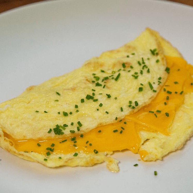 Omelete com muçarela (3 ovos): macia, cremosa e cheia de sabor.