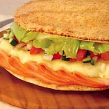 Peito de peru, queijo prato, requeijão, maionese, alface e tomate