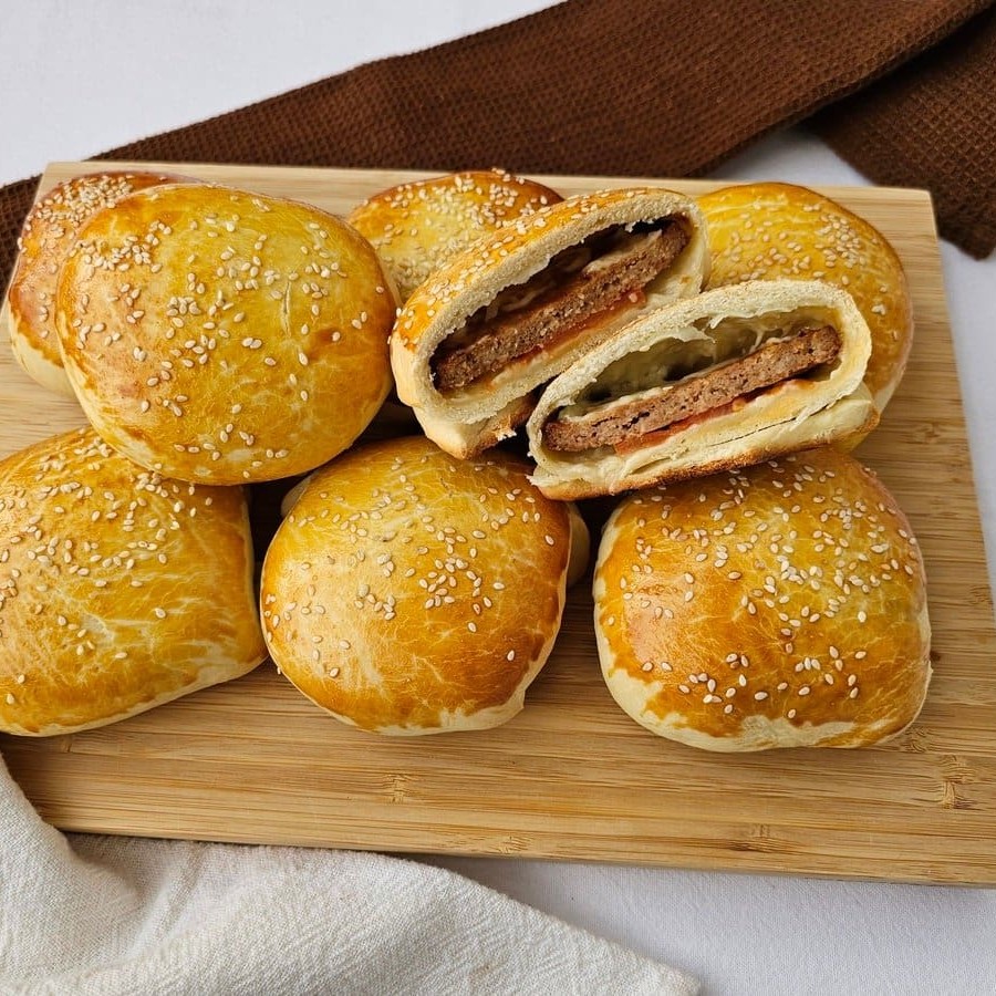 Massa macia recheada com hambúrguer suculento e temperado, oferecendo uma explosão de sabor a cada pedaço!