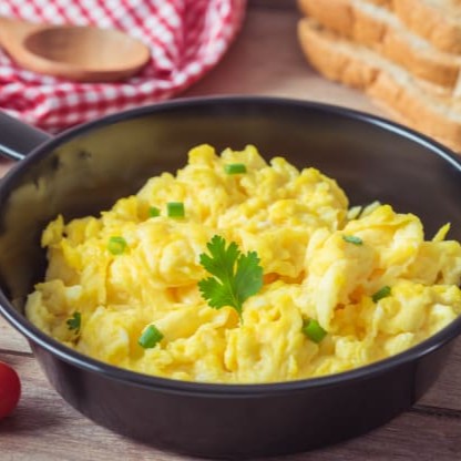 Ovos mexidos (3 ovos): cremosos e fofinhos, o sabor perfeito.