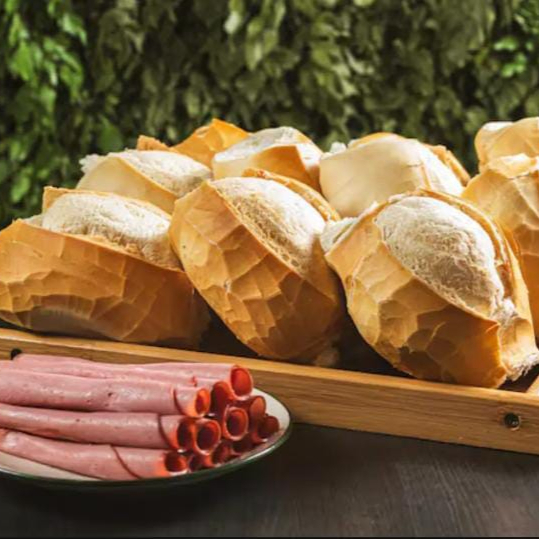 10 pães francês fresquinhos, crocantes por fora e macios por dentro, acompanhados de 200gr de mortadela defumada fatiada com aroma e sabor irresistíveis!