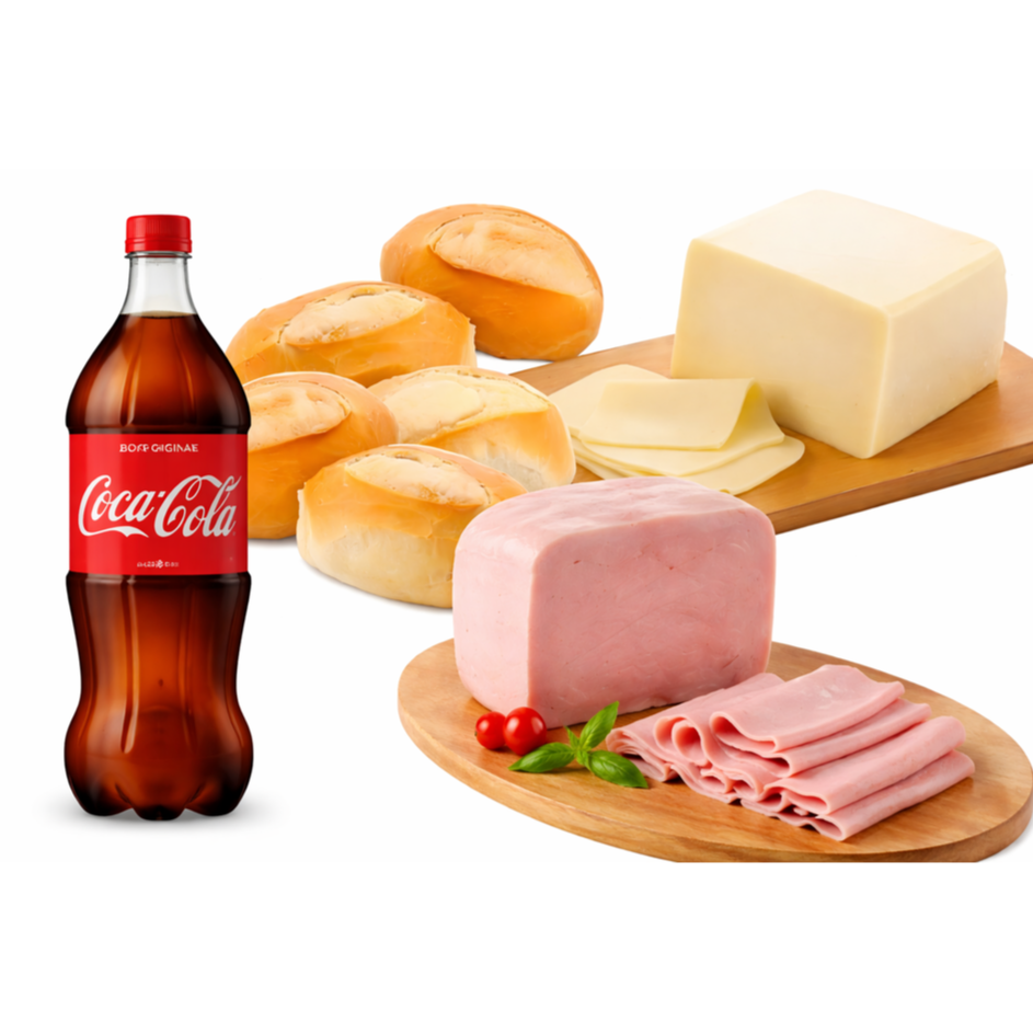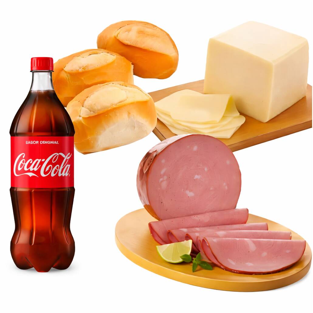 5 Pães + 200gr de Presunto + 200gr de Mussarela + Coca 1 Litro