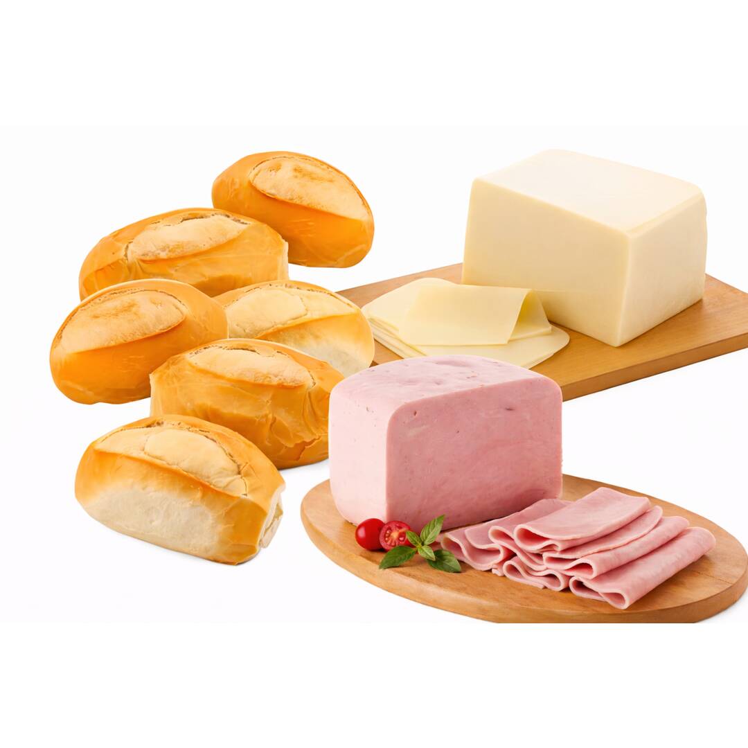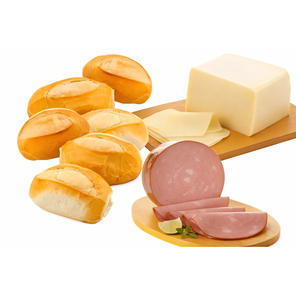 5 Pães + 200gr de Presunto + 200gr de Mussarela