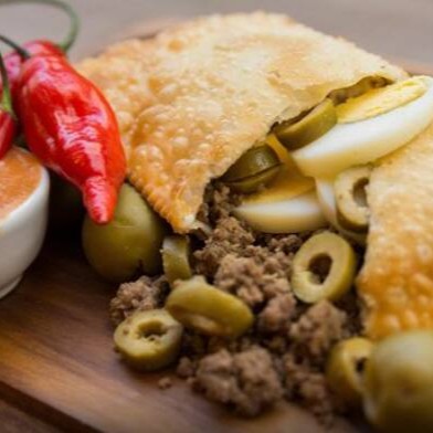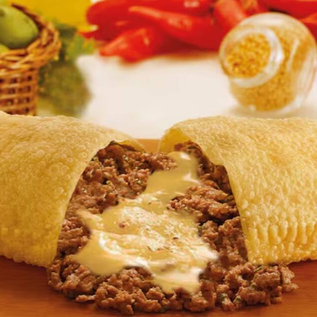 Recheio de Carne com queijo mussarela/ Acompanha vinagrete