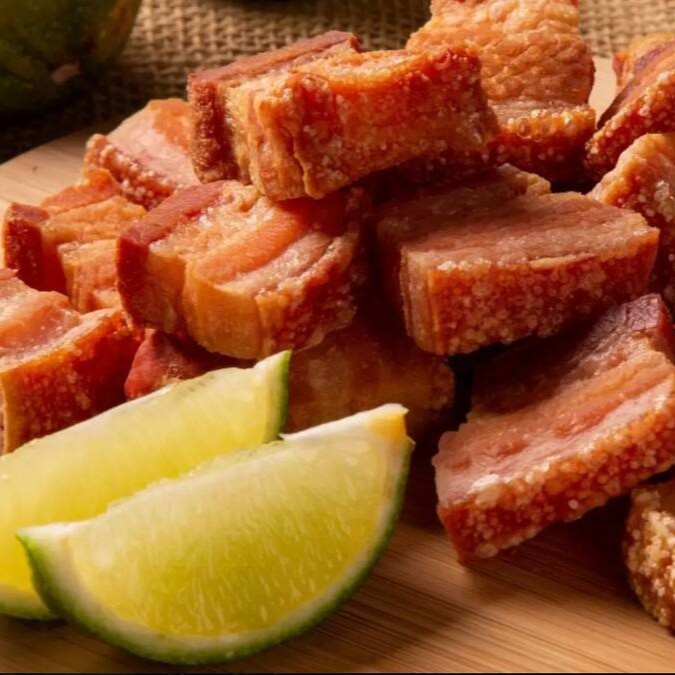 800g de Panceta frita / Acompanha molho de alho e molho Guava Pepper