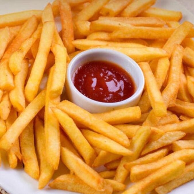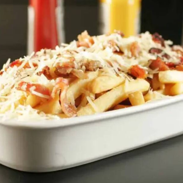 queijo mussarela e bacon acompanha molho de alho e ketchup
