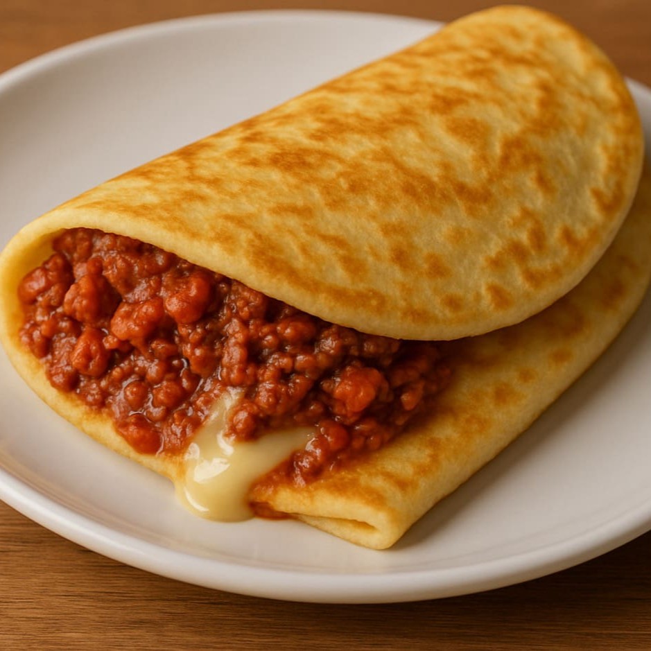 Duas panquecas recheadas com nossa deliciosa massa artesanal, cobertas com molho vermelho e nosso saborosa carne à bolonhesa, finalizadas com queijo parmesão. Uma explosão de sabor em cada mordida! Porção individual com aproximadamente 400g. Não perca a chance de experimentar!