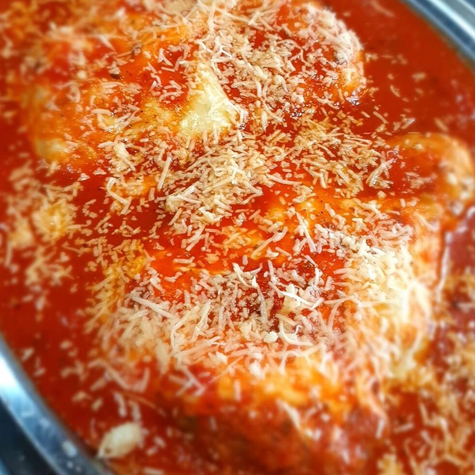 Acompanha arroz e batata frita. Frango empanado, coberto com molho de tomate feito em nossa casa e queijo musarela. Marmita, Batata frita, Promoção, Entrega Rápida, Entrega Grátis. Parmegiana campone