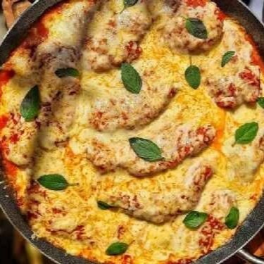 Acompanha arroz e batata frita. Tilápia empanada, coberta com molho de tomate feito em nossa casa, queijo mussarela e parmesão. Marmita, Batata frita, Promoção, Entrega Rápida, Entrega Grátis. Parmegiana campone