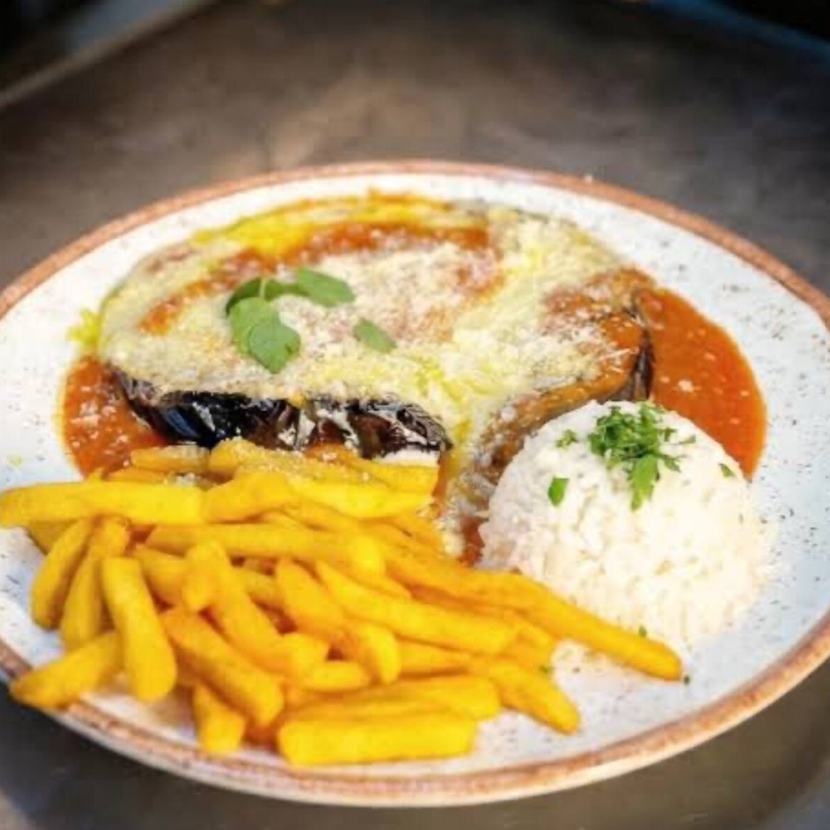 Parmegiana de Berinjela Deliciosa berinjela empanada, coberta com nosso saboroso molho vermelho artesanal e finalizada com queijo mussarela gratinado. Uma opção irresistível e cheia de sabor. Serve 1 pessoa.