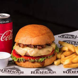 Hambúrguer bovino 120gr, queijo mussarela, maionese especial, alface e tomate