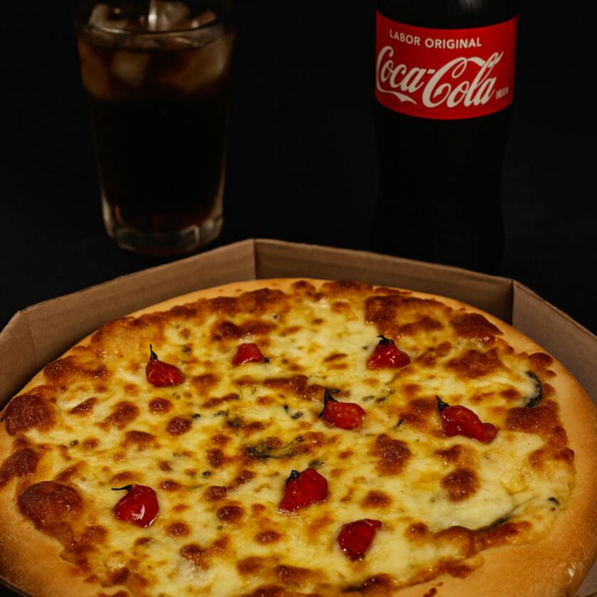 Leve 1 Pizza Estufadinha 400g sabor à sua escolha + 1 Coca-Cola 600ml geladinha!