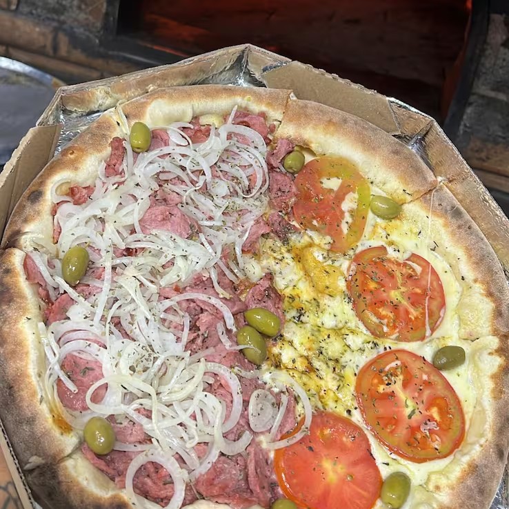 (r$20 Off) Meia Mussarela Meia Calabresa Clássica (8 Fatias)