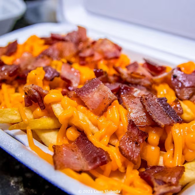 Cheddar cremoso e bacon fatiado