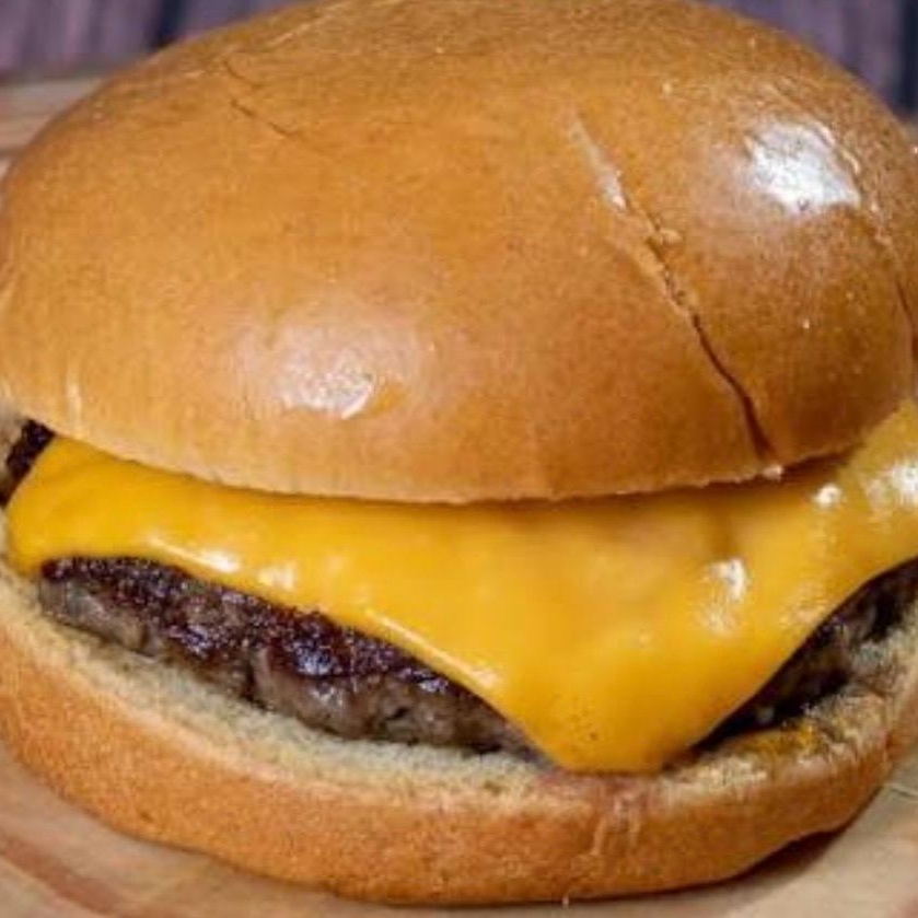 Pão de hambúrguer, carne artesanal, queijo cheddar, alface americana, tomate, cebola roxa e maionese da casa.