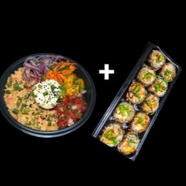Um delicioso Poke a Sua escolha + 10 peças de hot rolls para completar a sua refeição! Aproveite! Peça O Seu!