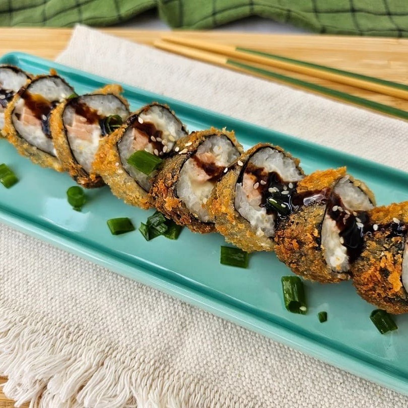10 Unidades de um delicioso hot roll com recheio de Salmão Grelhado. Finalizado com Tarê, Cebolinha e Gergelim!