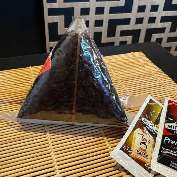 Bolinho de Arroz Japonês tradicionalmente moldado em forma triangular, envolto a uma alga de Nori crocante e recheio da sua escolha! Temos recheio de Salmão Fresco, Salmão Grelhado e Shimeji. *Esse item vai com a alga em um plástico para manter a crocancia. Só seguir as instruções para retirar o plástico e aproveitar essa delicia!!