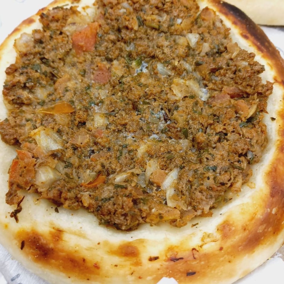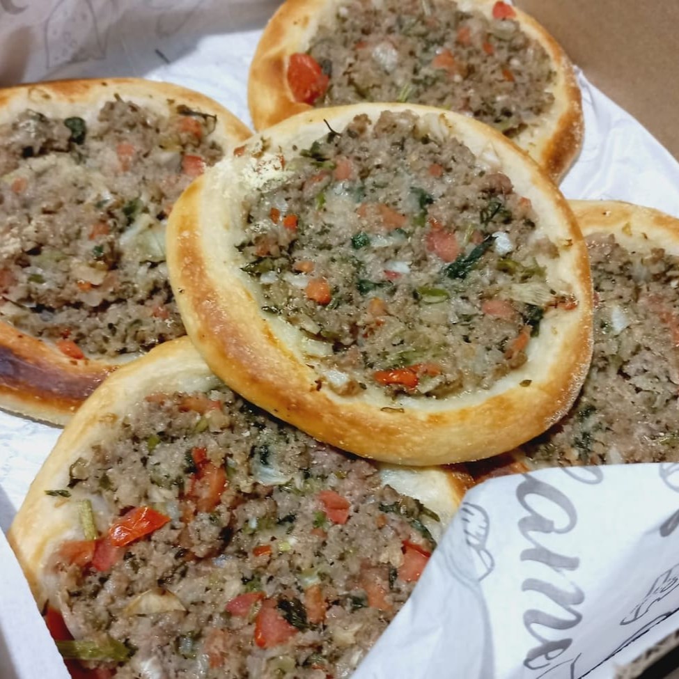 Esfiha Aberta artesanal de 12cm, feita a partir de farinha de trigo especial, longa fermentação,, recheio de carne bovina, tomate, cebola e especiarias, e temperos do Choco.