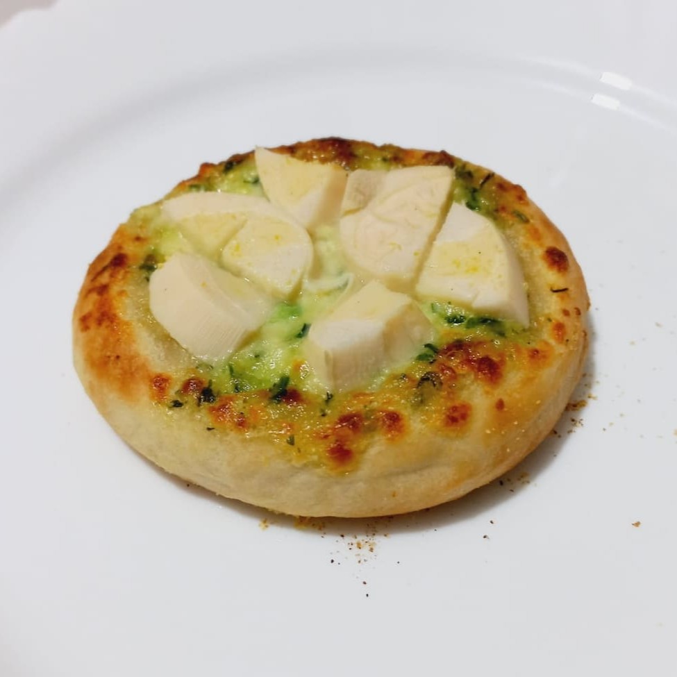 Esfiha Aberta artesanal de 12cm, feita a partir de farinha de trigo especial, longa fermentação,recheio de palmito com um mix de queijos produzidos artesanalmente e especiarias.