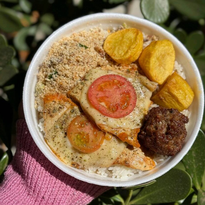 ARROZ, FEIJÃO, BIFE ACEBOLADO, LINGUIÇA, MACARRÃO PRIMAVERA, PURÊ DE BATATA, FAROFA TEMPERADA